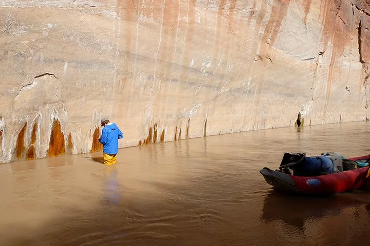 This run-in with the seeps got me started on a years-long project called, wait for it, the Seeps Project. The majority of the images I've done so far are from the Dirty Devil, particularly the last 12 miles or so of this previously inundated little river that only runs a bit in the cold, dark months and whenever it decides to rain big in the desert. I’ve done a decent job of being out there a couple three times a year for the last ten years or so in high, moderate, low, and stupid low flows.