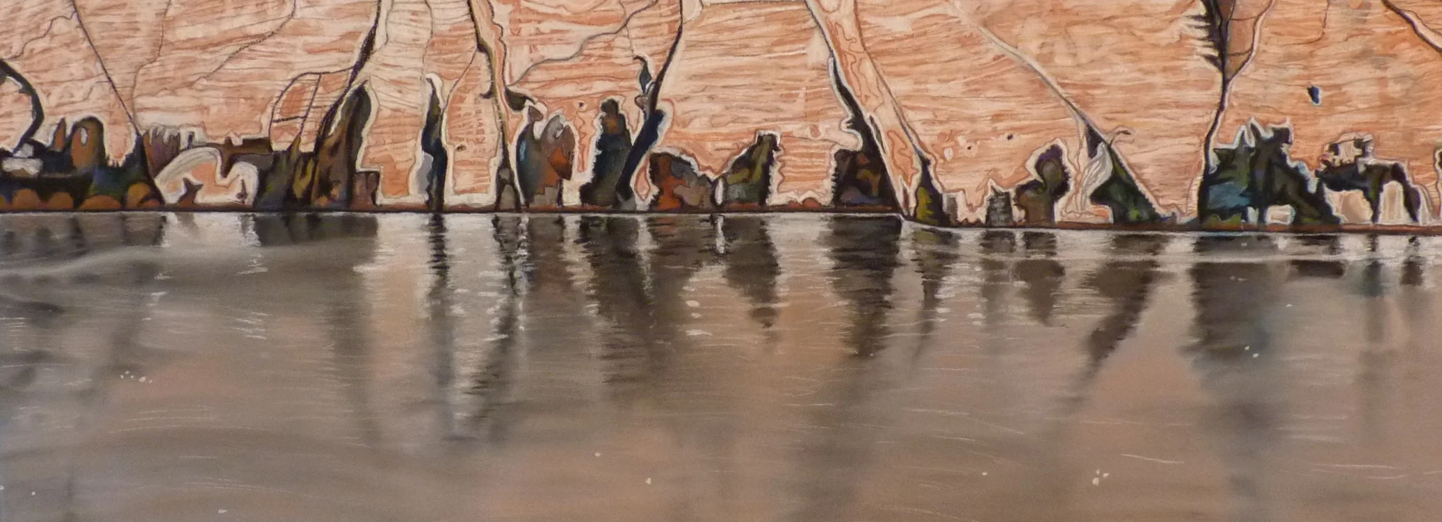 I was just mesmerized by the forms that were created by these seeps. They reminded me of Barrier Canyon Style figures, the pictograph forms that we see around the Colorado Plateau. I saw them as being full of story, full of narrative. I viewed them as expressive, and started using them as a language to process and articulate what I was experiencing in life. And the fact that they were reflected in the little river as it raced by blew my aesthetic mind.